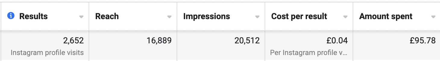 Depending on budget, results will vary but with our minimum Ad Spend of £100 you will expect to see anywhere between 2-3k Instagram profile visits and between 15-25k impressions.